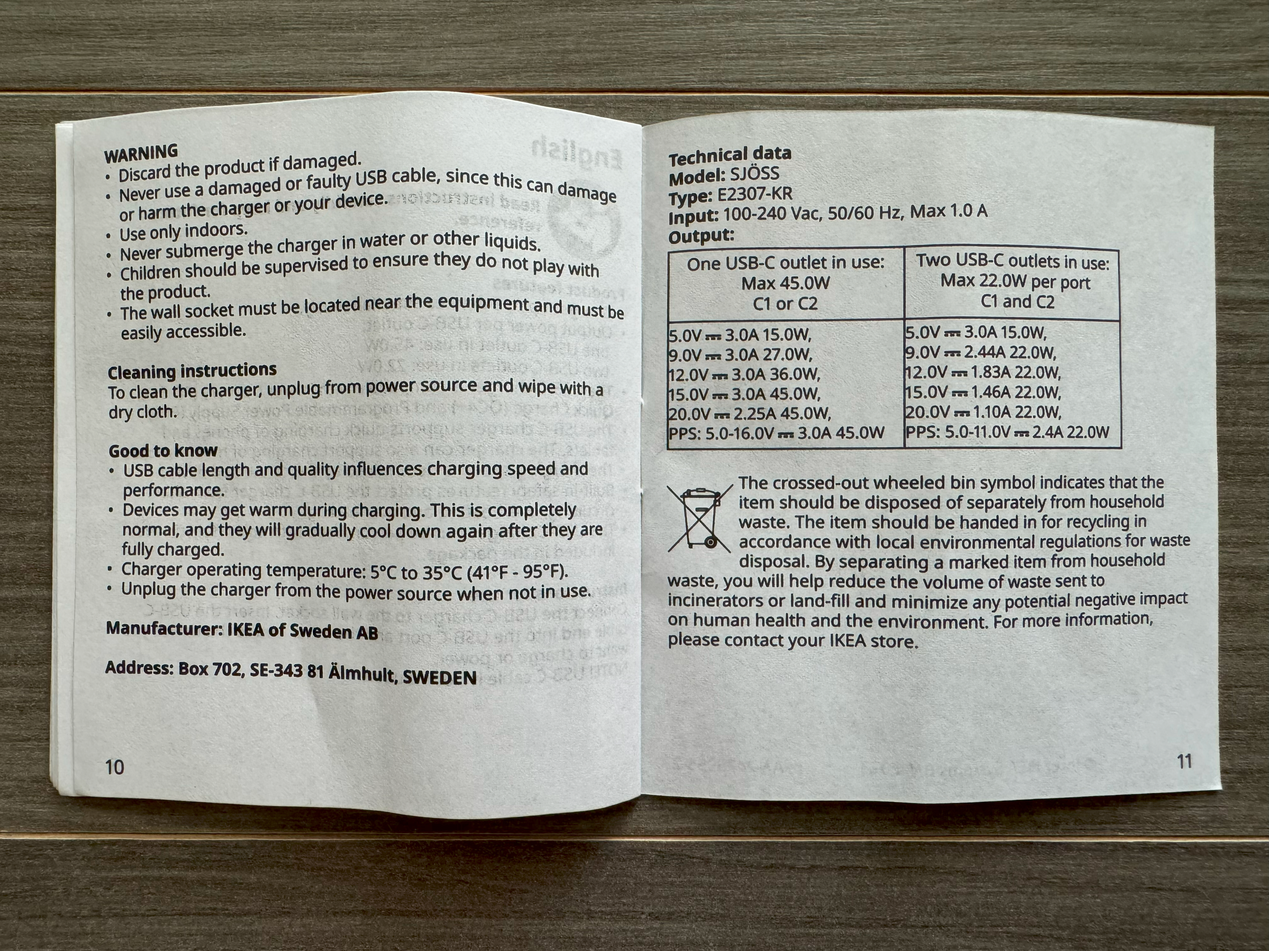 IKEA SJÖSS 셰스 45W USB 충전기 2구 설명서